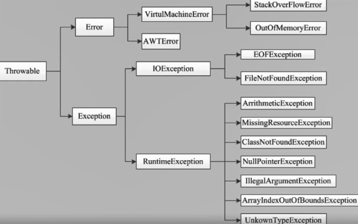 - Error类对象由Java虚拟机生成并抛出,大多数错误与代码编写者所执行的操作无关。